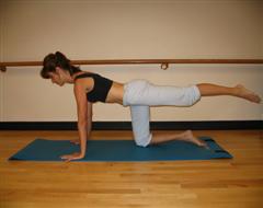 Kneeling on your hands and knees and keeping the spine in a neutral position extend one leg back until it is parallel to the floor. Once you can accomplish this with some stability extend the opposite arm in unison.